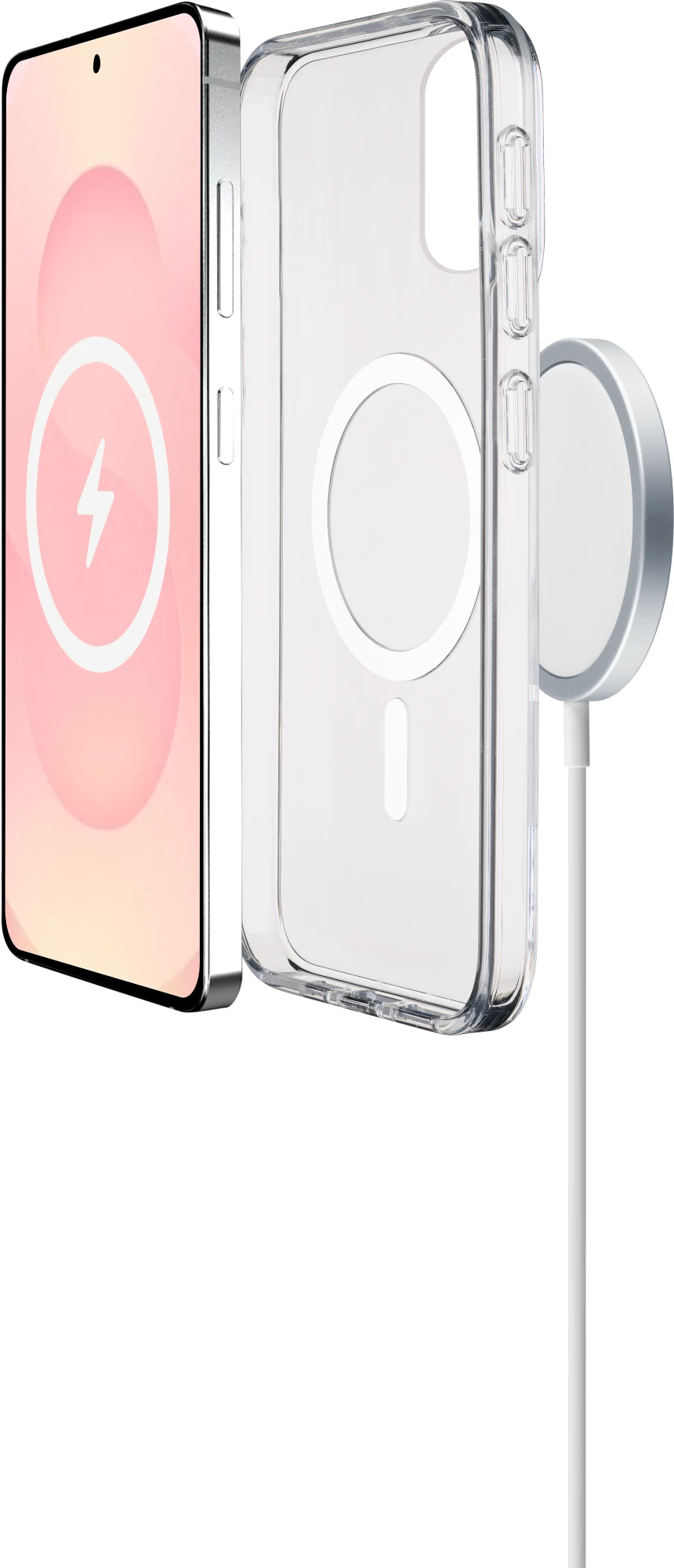 CLEAR MAG ist die transparente Hülle, die für die Interaktion mit dem MagSafe-Ökosystem entwickelt wurde. Mit einer harten Rückseite und einem Gummirahmen bietet sie Schutz und Funktionalität, ohne den Stil des Smartphones zu verändern. Sie besteht aus innovativen Materialien, die das natürliche Vergilben verzögern und so die Transparenz länger erhalten. Die Military-Test-Zertifizierung gewährleistet umfassenden Schutz vor Stößen und Stürzen, während die erhöhten Kanten Kamera und Display schützen. Die im Material integrierte antibakterielle Formel sorgt für zusätzliche Hygiene und macht CLEAR MAG zur idealen Wahl für alle, die dauerhafte Klarheit, überlegene Widerstandsfähigkeit und perfekte Kompatibilität mit MagSafe-Zubehör suchen. MagSafe-Hüllen sind dafür konzipiert, das Galaxy S25 Edge mit dem MagSafe-Ökosystem kompatibel zu machen, um kabelloses Laden und magnetisches Zubehör zu ermöglichen.